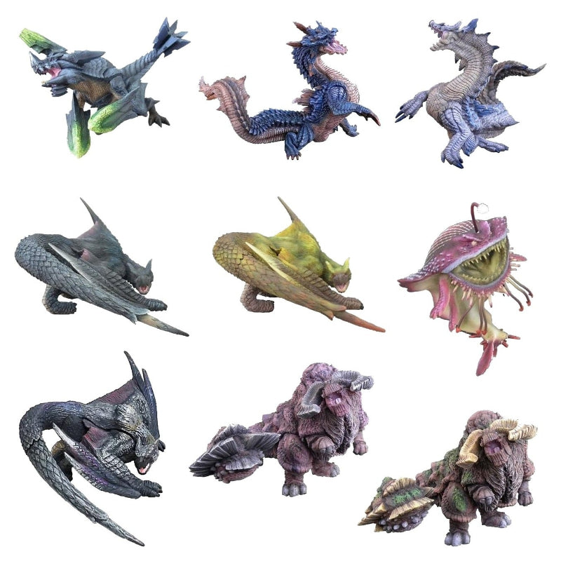 Lineup (set of 9): Brachydios, Lagiacrus, Lagiacrus Subspecies, Nargacuga, Subspecies Nargacuga, Chanagul, Dobomberg, Dobomberg Subspecies