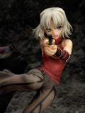 Posed in an dynamic pose in the middle of an intense battle, the figure is sculpted to bring out the same feeling that the character designer, TYPE-MOON's Takashi Takeuchi, put into his designs. The robe that flutters by her side is the same robe seen in the bonus scenario from the game '428: Fusasareta Shibuya de', and the base is designed to be a scenic diorama from the series itself, to truly feel like the figure is within the world of CANAAN.